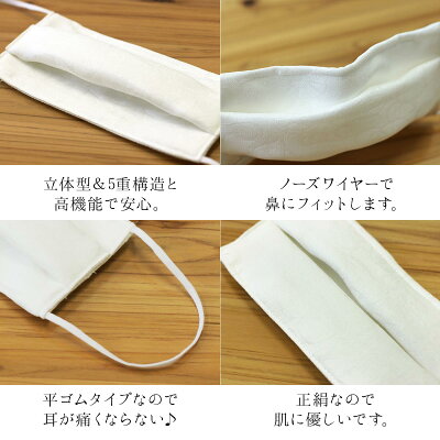 マスク【発送は4/15以降になります】立体マスク 五層構造 洗える 正絹 レギュラーサイズ 大人用 繰り返し使える フィルター ノーズワイヤー 花粉症 ほこり 高密度 抗酸化 ウイルス 痛くならない 標準 保湿性 吸湿性 防臭 【ネコポス可】【RCP】木楽会 kirakukai